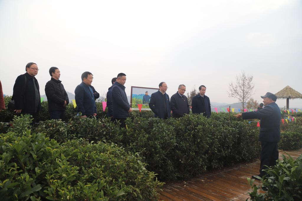 在女娲凤凰茶业现代示范园区,中心组成员踏着习近平总书记的足迹,认真聆听蒋家坪村党支部书记罗显平现场讲解,重温习近平总书记“两山理论”,感悟习近平总书记深厚的为民情怀和强烈的担当精神。