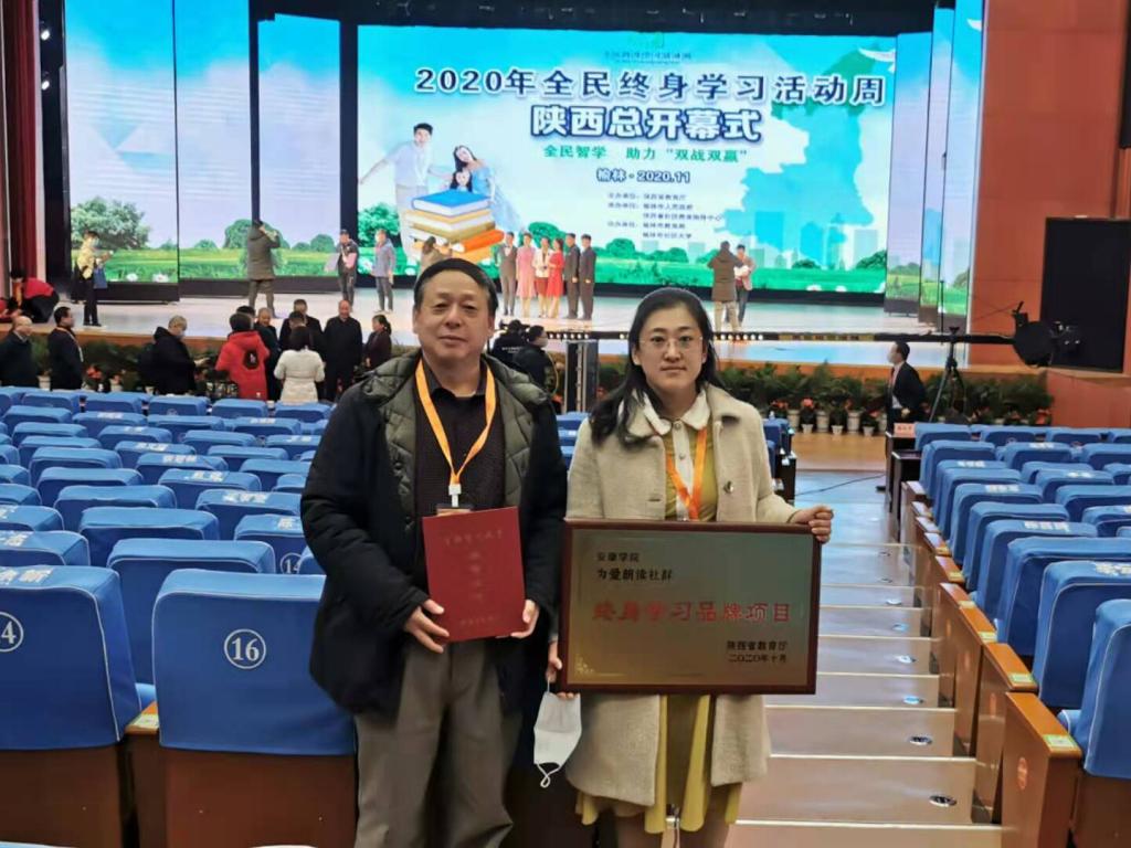 11月28日,陕西省2020年全民终身学习活动周总开幕式在榆林市工人文化宫隆重举行。Beat365教师赵临龙作为“百姓学习之星”、陈佳作为“为爱朗读社群”终身学习品牌项目代表应邀参加了总开幕式,并接受表彰。