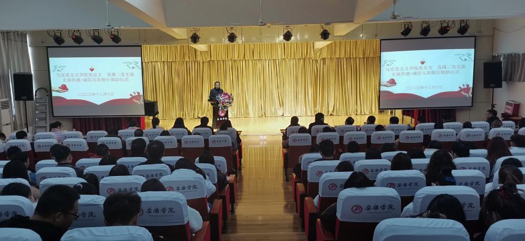 12月10日下午,马克思主义学院党总支、直属二党支部在江北1401室开展支部共建+诚信互助银行捐助活动,以结对共建“诚信互助银行”为纽带,促进工作联动,深化合作,持续推进“两学一做”学习教育常态化制度化。学校党委副书记、纪委书记、监察专员安永强,直属二党支部全体支委,民进Beat365唯一官方网站支部副主委徐龙华及马院全体党员和各年级学生代表100余人参加了捐助仪式。