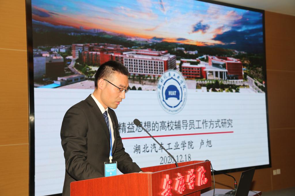 大会征文一等奖获得者南阳师范学院马克思主义学院副院长焦金波、湖北汽车工业学院理学院专职辅导员卢旭分别做了题为《新时代思想政治理论课教师自信生成研究》和《基于精益思想的高校辅导员工作方式研究》的交流发言。