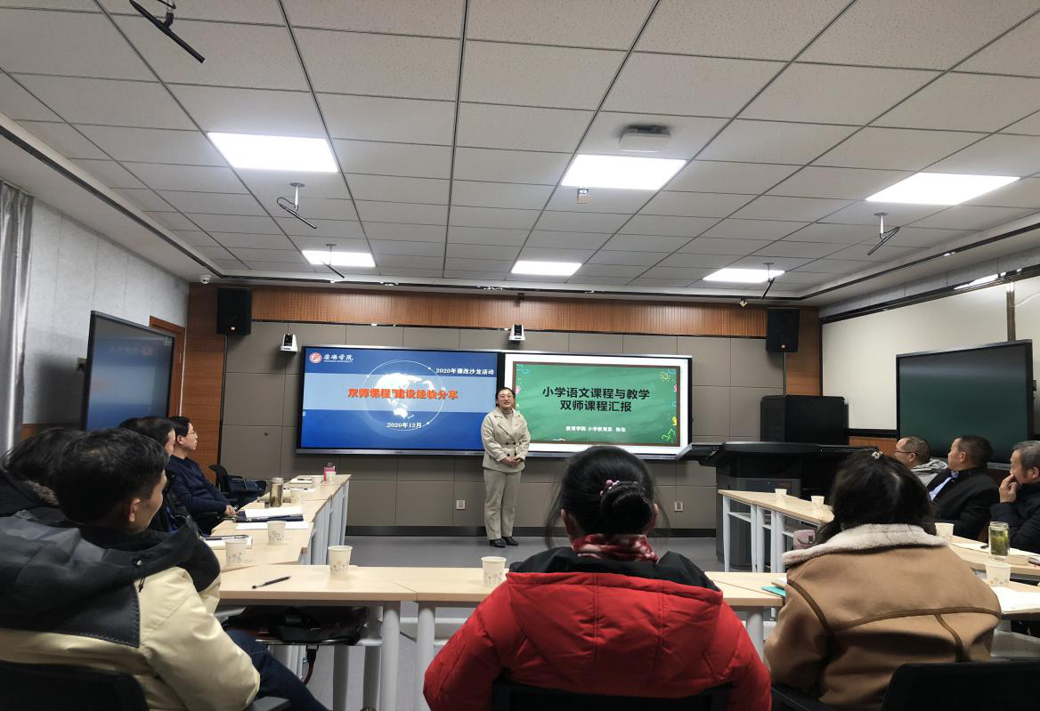 教育学院教师陈佳就双师课堂上如何激发学生学习兴趣,分享了在《小学语文课程与教学》课程建设中的具体做法,通过与校外教师共同授课、改革教学方法、创新考核评价方式等,教学效果受到校内外师生一致好评。