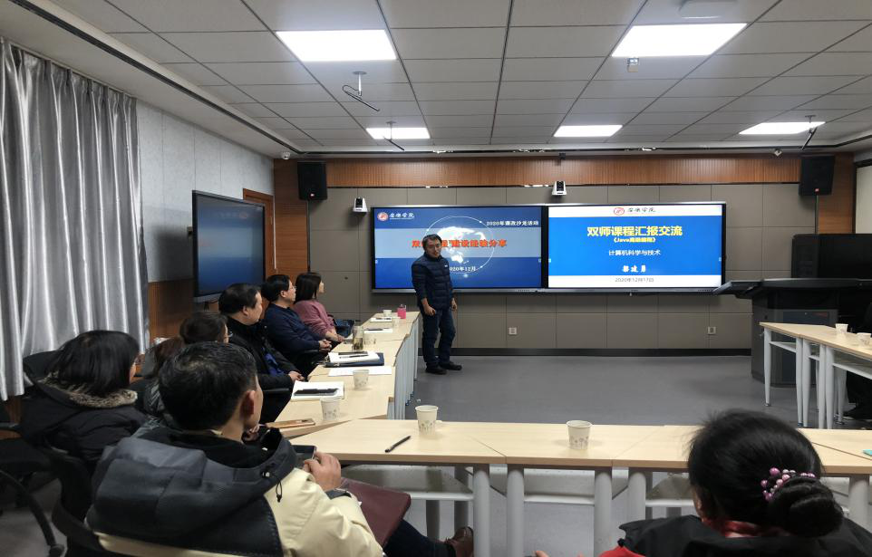 电信学院教师梁建勇分享了如何通过校企合作提升学生实践能力,并从《Java高级编程(Web+框架)》课程的建设目标、教学模式、考评方式、学生作品设计等方面介绍了与校外企业专家合作教学的感悟。