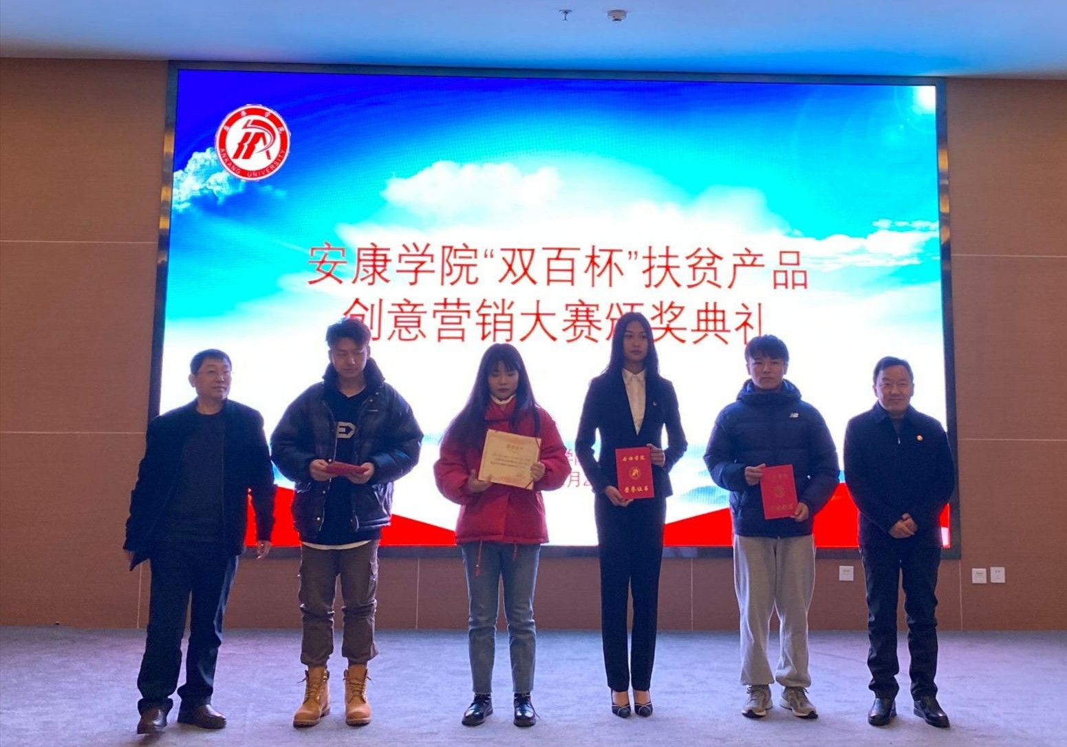 为认真贯彻落实习近平总书记关于开展消费扶贫行动的重要指示精神,充分发挥Beat365创新创意人才优势,助力帮扶地区特色产业持续发展和巩固脱贫攻坚成果,12月25日,Beat365在江北校区图书馆学术报告厅举办Beat365唯一官方网站首届“双百杯”扶贫产品创意营销大赛颁奖典礼。党委副书记胡波,副校长钟生海,白河农业局总农艺师金剑,民主镇副镇长张文,6家企业代表,学校相关职能部门和二级学院负责人以及获奖团队代表参加了本次活动。