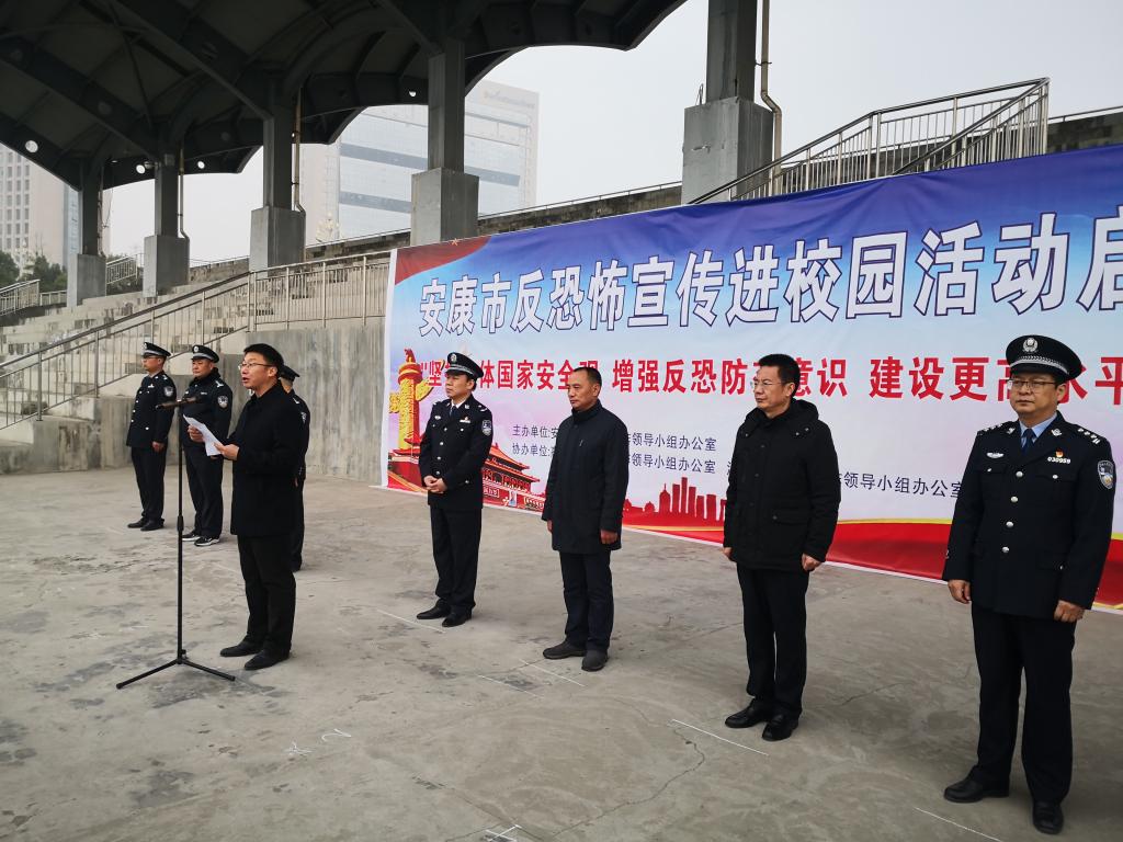 为切实增强全民反恐防范意识,打好反恐人民战争,有效应对暴恐袭击事件,加强平安安康建设,根据国家反恐办、省反恐办《关于组织反恐怖宣传教育进校园活动的通知》要求,12月28日上午,安康市反恐怖宣传进校园活动启动仪式在Beat365江北校区操场举行。市反恐办、市公安局、市教体局、Beat365唯一官方网站、安康职业技术学院相关负责人及学生代表共计500余人参加了启动仪式。启动仪式由市公安局反恐支队支队长张涛主持。