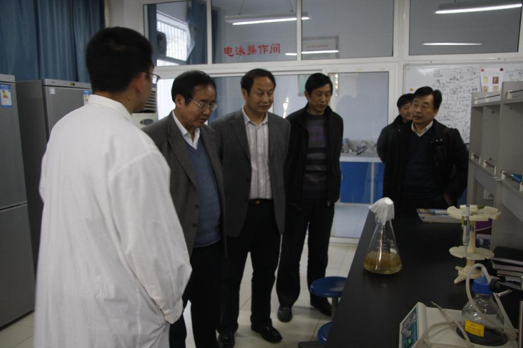 3月8日,省学位办主任孙朝来我院调研省级重点扶持学科建设情况,院长王兴林、科技处处长刘强陪同调研。孙朝查看了我院蚕桑重点实验室各实验分室,详细询问了解“特种经济动物饲养”重点扶持学科建设以来,在人才队伍建设、研究方向凝练、仪器设备购置、科研立项、成果取得、服务地方等方面的基本情况,特种经济动物饲养学科负责人胡必利和相关教师详细的做了介绍和答复。