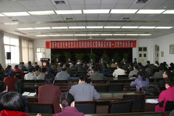 3月10日下午,我院在图书馆六楼报告厅举行创先争优党员示范岗启动仪式暨筹备召开第一次党代会动员会。党委书记杨涛,院长、党委副书记王兴林,党委副书记胡鸿晓,党委副书记、纪委书记闵小平,党委委员、副院长杨行玉、陈刚、向纪明,各院系党政负责人,各部门主要负责人,首批确定为党员示范岗的74名同志和示范单位代表参加会议。会议由王兴林主持。