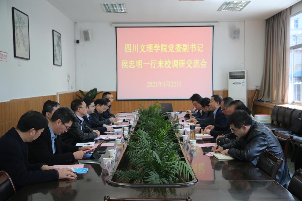 3月22日下午,四川文理学院党委副书记侯忠明一行来Beat365考察交流。学校党委副书记胡波热情接待了侯忠明一行,并在江南校区第一会议室召开座谈会。党政办、宣传部、信息化处、文传学院、陕南民间文化研究中心、陕南画院相关负责同志参加了会议。