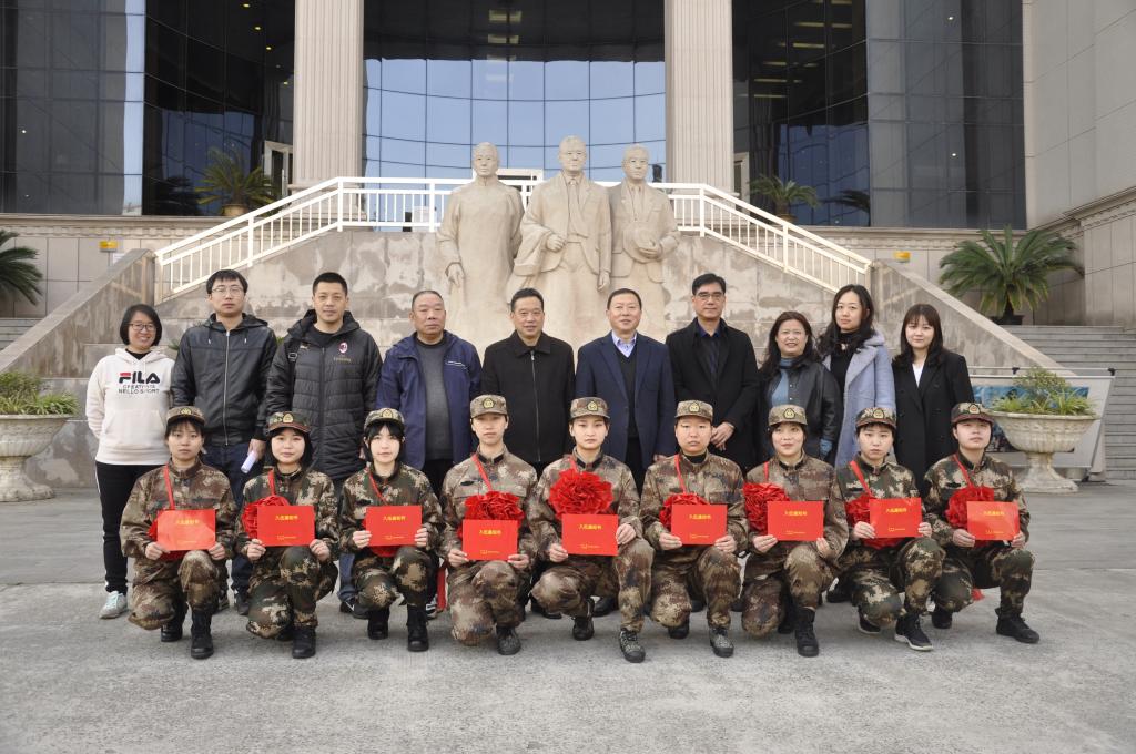 在欢送会上,胡波为入伍新兵们发放通知书。入伍新兵代表及家长代表先后发言,表达了对学校的感谢。新兵代表戴家琛表示要在部队努力训练、迎难而上、磨炼意志,为祖国立功、为学校添彩。