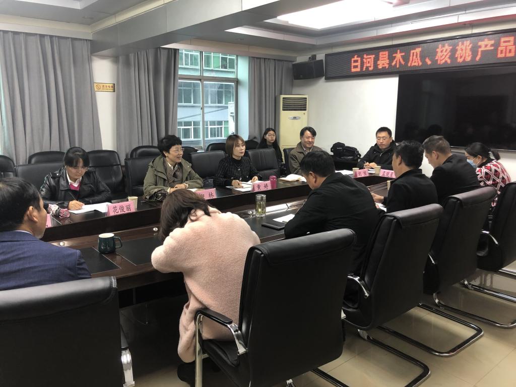 阮家顺提出光皮木瓜产业作为白河县八大产业之首,希望在突出生态效益的基础上提高经济效益。白河县林业局副局长薛满就白河县木瓜基地建设情况、木瓜加工企业现状进行了介绍,并重点梳理了白河木瓜产业亟需解决的问题。企业代表对生产及产品研发上遇到的技术难题与问题进行了详细阐述。