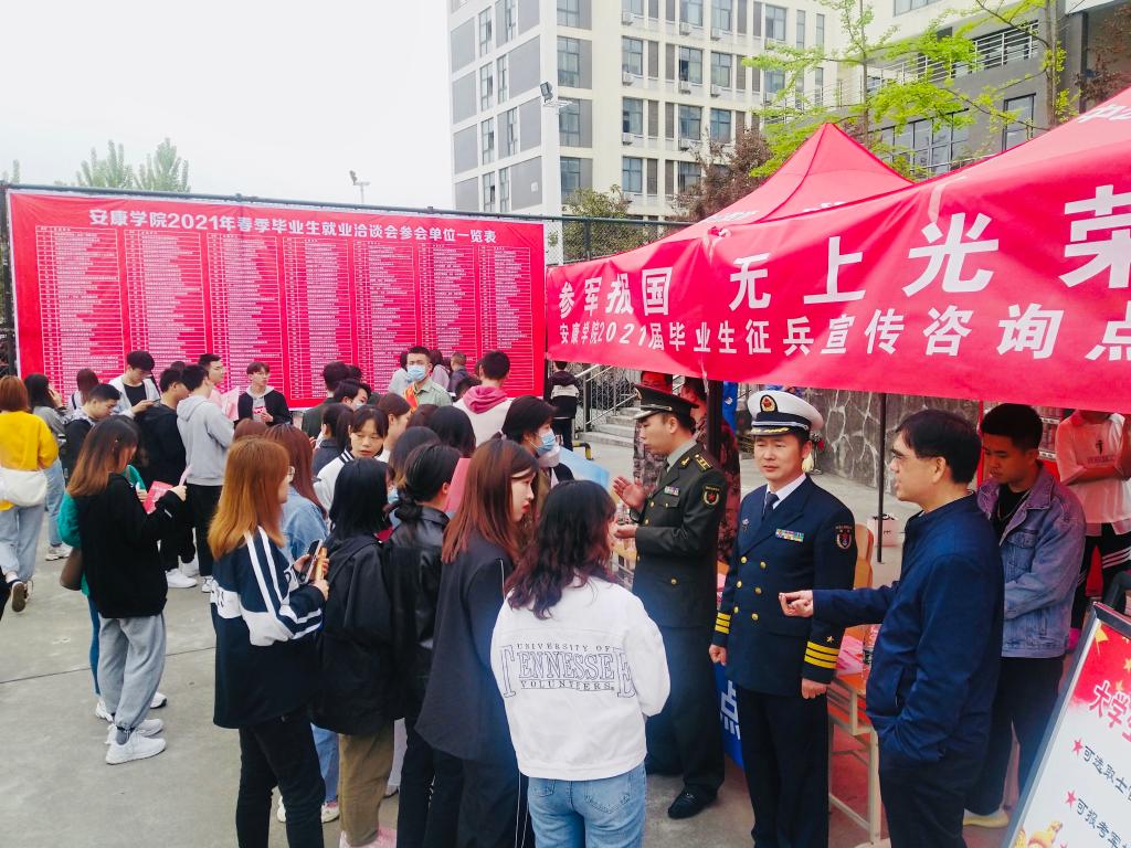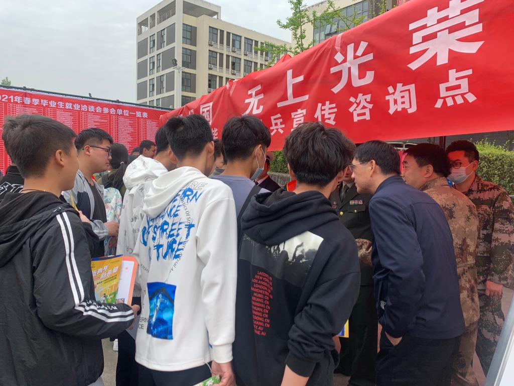 为进一步激发广大学生携笔从戎、献身国防的热情,充分调动学生参军入伍的积极性,深入做好毕业生入伍宣传动员工作,4月17日上午,学工部利用举办2021年春季毕业生招聘会的契机,将征兵宣传站搬进了招聘会现场,大力开展宣传咨询活动,引导毕业生积极报名参加。