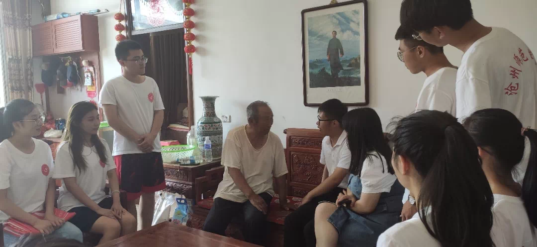 “蒲公英“爱心支教小分队细心听取老党员讲述党史故事