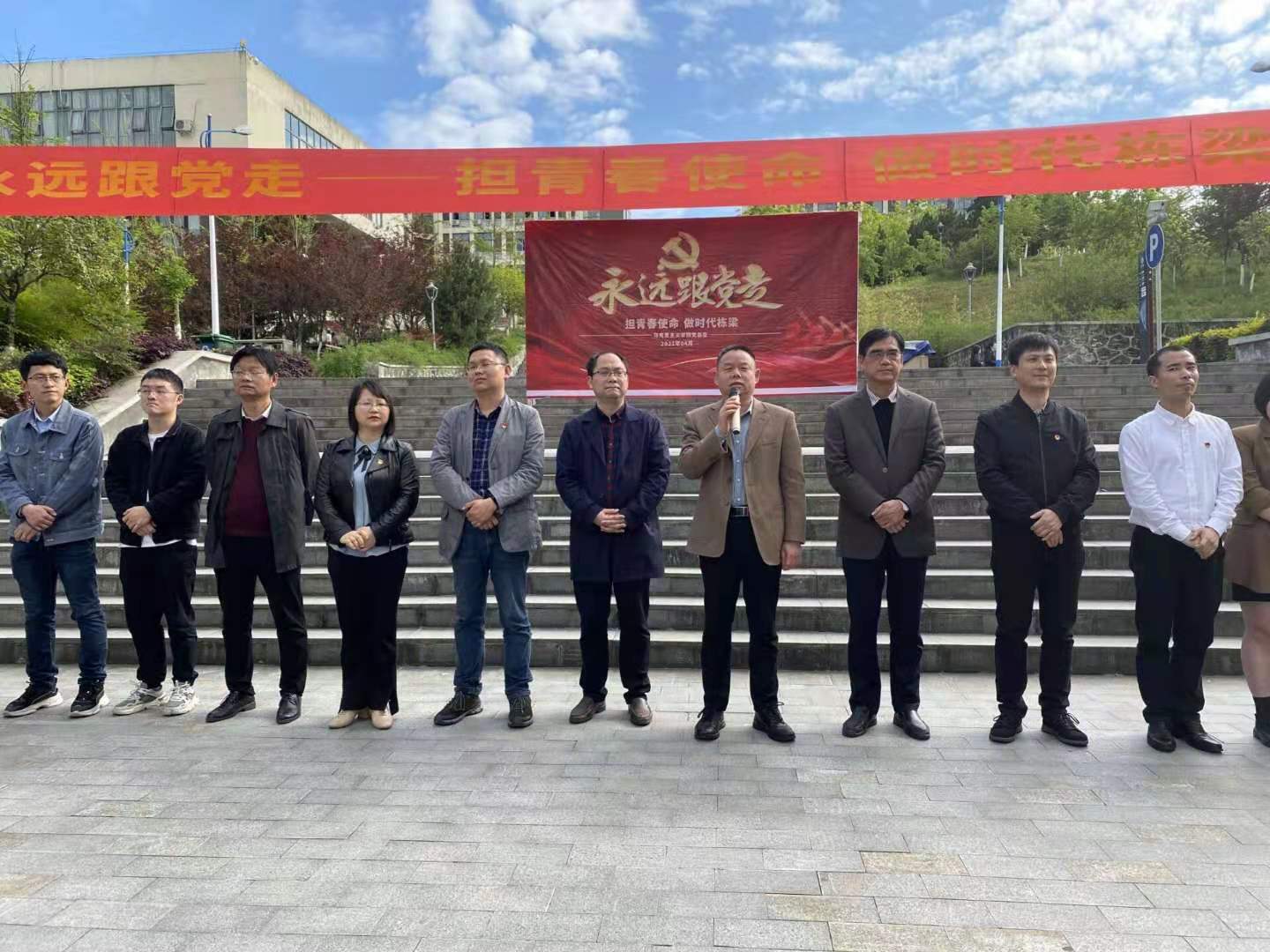 4月26日下午,马克思主义学院在江北校区举行“永远跟党走——担青春使命,做时代栋梁”活动启动仪式。学校党委副书记、纪委书记、监察专员安永强,宣传部、学工部、团委负责人应邀出席本次活动。马克思主义学院党总支委员、支部委员、工会委员、两办主任及300余名学生代表参加本次活动。活动由党总支书记田静主持。