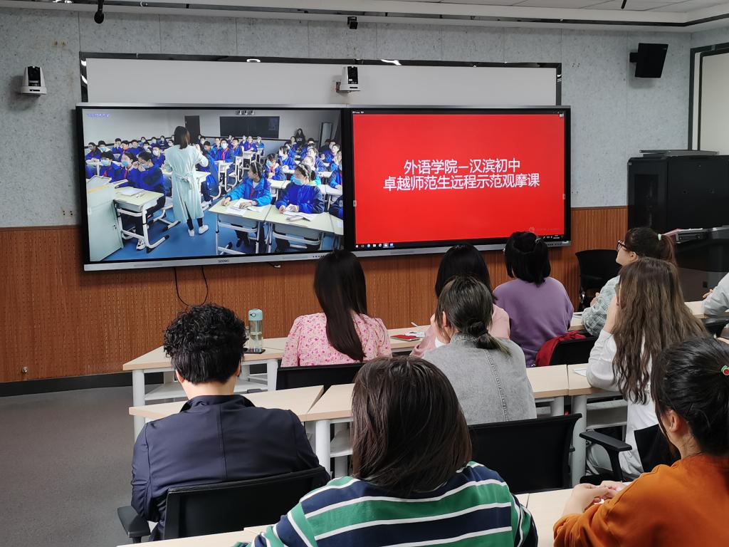 为进一步提升师范生实践教学能力,探索校校协同育人机制,切实推进卓越师范生培养工作,4月28日下午,Beat365外语学院首届英语教师卓越班依托师范生职业技能训练中心录播互动平台,远程观摩了汉滨初中省级英语教学能手张静的英语示范课。