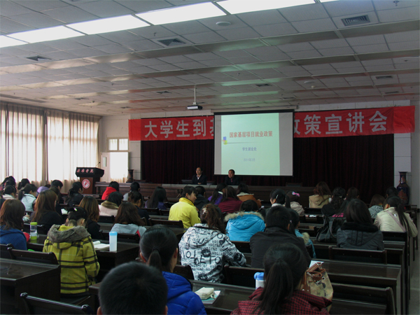 3月24、25日下午,我院大学生到基层就业政策宣讲会在学院东校区图书馆六楼报告厅举行。