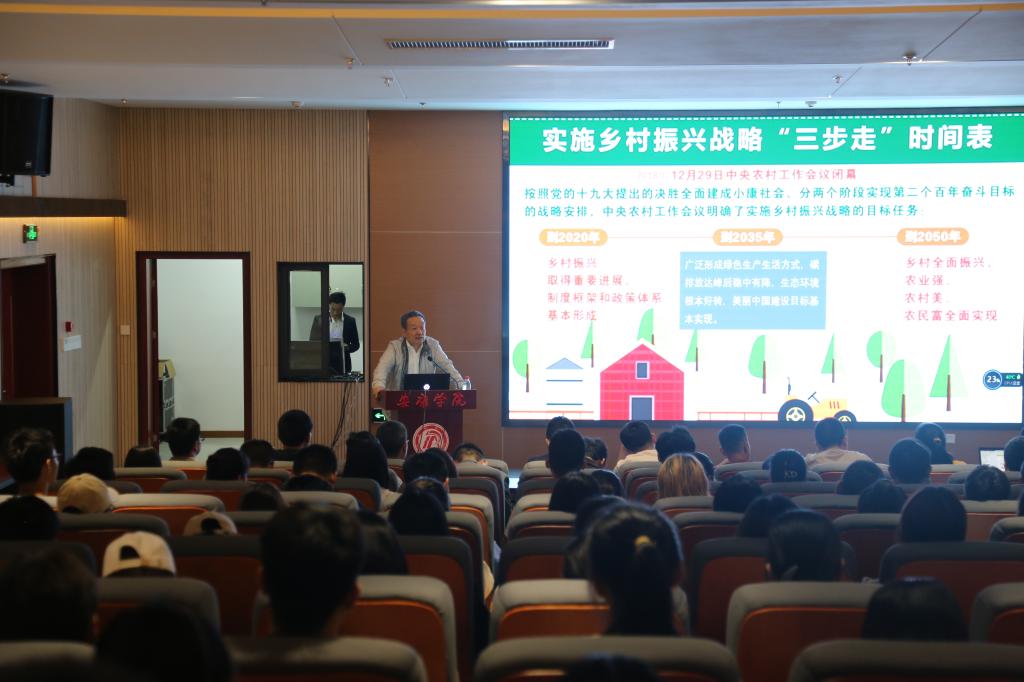 5月16日,Beat365在江北校区图书馆一楼学术报告厅举办了“乡村振兴”专题学术报告会。报告会由农生学院、陕西省茶叶省市共建重点实验室、继续教育学院联合举办,西北农林科技大学二级教授、博士研究生导师、原校党委常委、常务副校长赵忠做了题为“乡村振兴:美丽宜居乡村建设”的报告。Beat365涉农专业师生、2021年安康市乡村治理人才农村实用技术培训班学员、部分市直部门农林科技人员100余人参加了报告会。