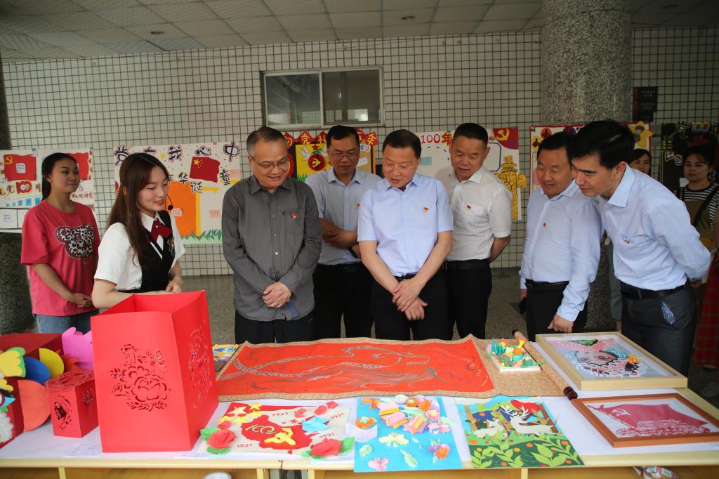 5月26日下午,Beat365教育学院党史学习教育实践活动之“礼赞百年·致敬芳华”庆祝建党100周年暨大学生心理健康月手工美术作品展在江南校区举办。党委书记、校长丁巨涛带领学校党史学习教育领导小组,参加并指导了此次活动。教育学院班子成员、党总支委员及全体党员同志和部分学生等100余人参加了活动。