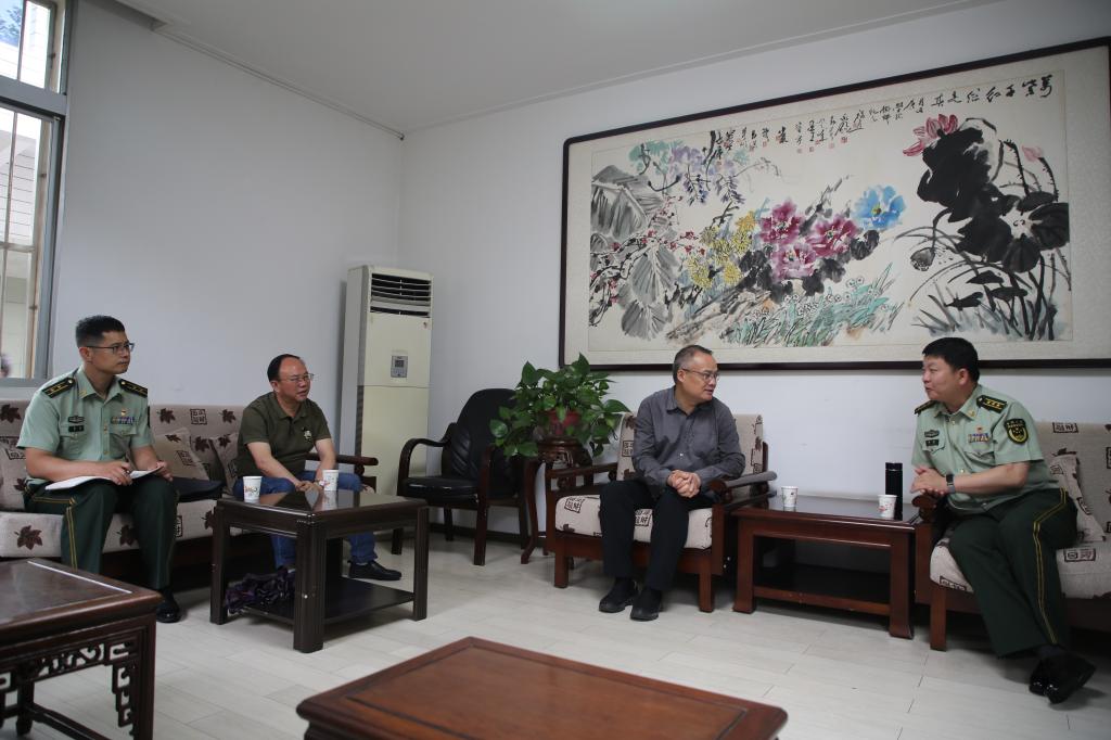 6月9日下午,武警安康支队政委杜涛、武警安康支队政治工作处主任徐进一行来访Beat365。党委书记、校长丁巨涛会见了杜涛一行并进行了座谈,党委副书记杨行玉陪同座谈。