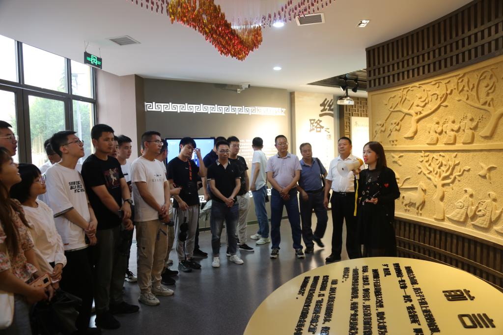 在鎏金铜蚕出土地池河镇谭家湾村,安康市蚕桑产业发展中心蚕研所所长、实践教学指导教师陈正余声情并茂地讲述了鎏金铜蚕从“破土而出”再到“走红世界”的全过程,全体学员深刻感受到了安康石泉“金蚕之乡、丝路之源”的厚重蚕桑历史文化积淀与魅力。在池河镇明星村,全体学员参观了桑品种博览园、特色主题民宿、果桑体验园、智能化养蚕共育机,对“蚕桑特色产业+康氧休闲旅游”模式有了更加全面、更加深刻的认知。在陕西石泉天成丝业有限公司,现代化、规模化的蚕丝制品生产线以及产业链开发,让全体学员大开眼界。
