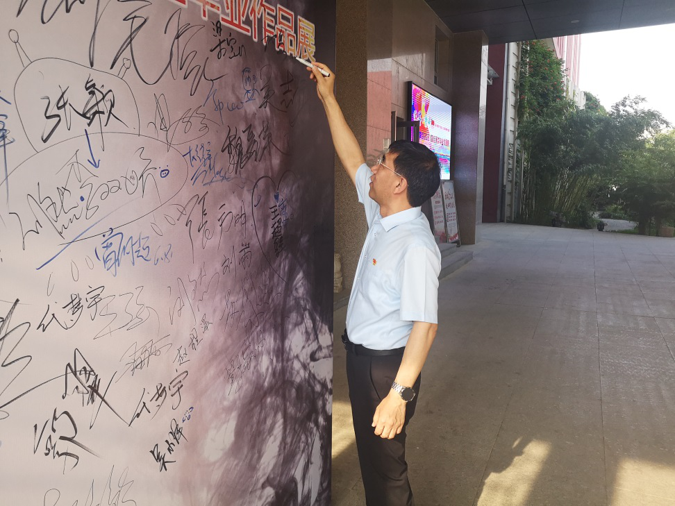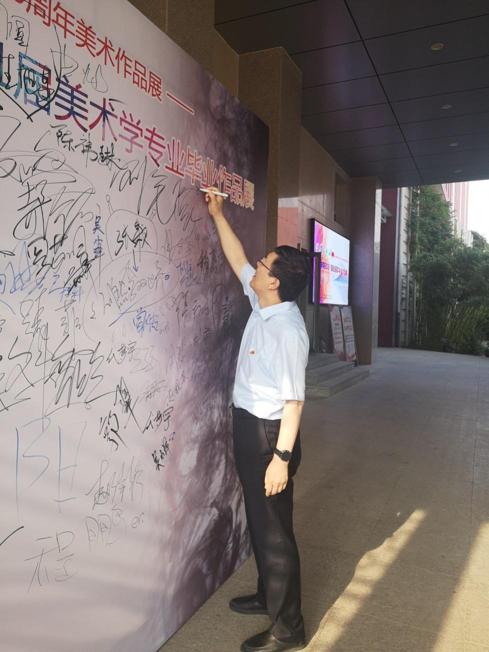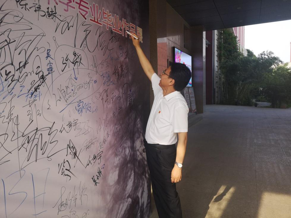 校党委书记云电军在毕业作品展签名墙上签名留念