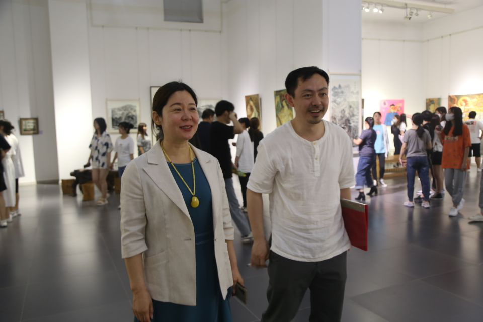 6月8日上午,“庆祝建党100周年暨‘浓墨•重彩’2021届绘画类毕业作品展”在太阳集团洪昌美术馆开幕。校党委书记云电军,校党委副书记、校长张占平在展览签名墙上签名留念。原沧州市委常委、政法委书记周爱民,沧州市文联副主席、中国画写意研究会会长王君,沧州市美协副主席、华北理工大学课外实践研究生导师、客座教授王春周,校科研督导委员张拥霞,美术学院相关负责人出席活动。