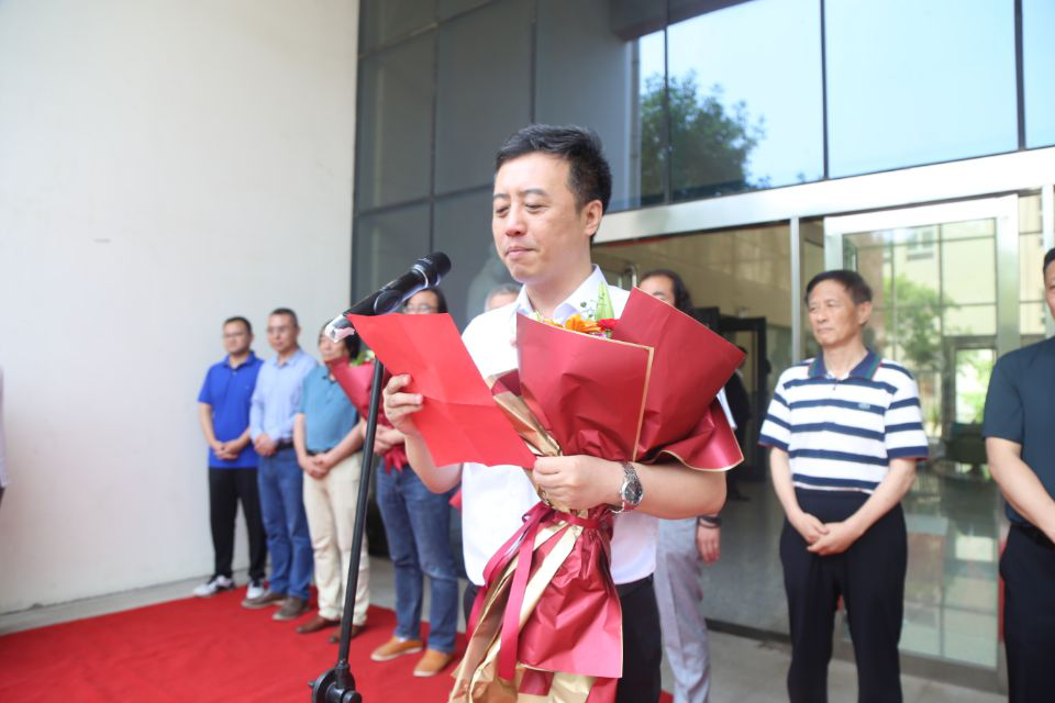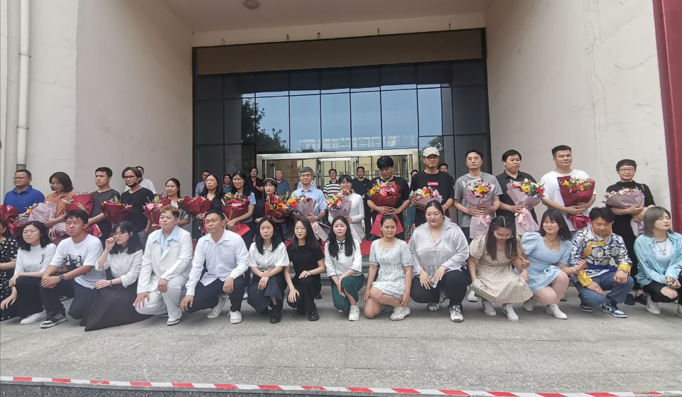 开幕式上,同学们为优秀毕业作品指导教师献上鲜花,表达他们对恩师的感激之情。