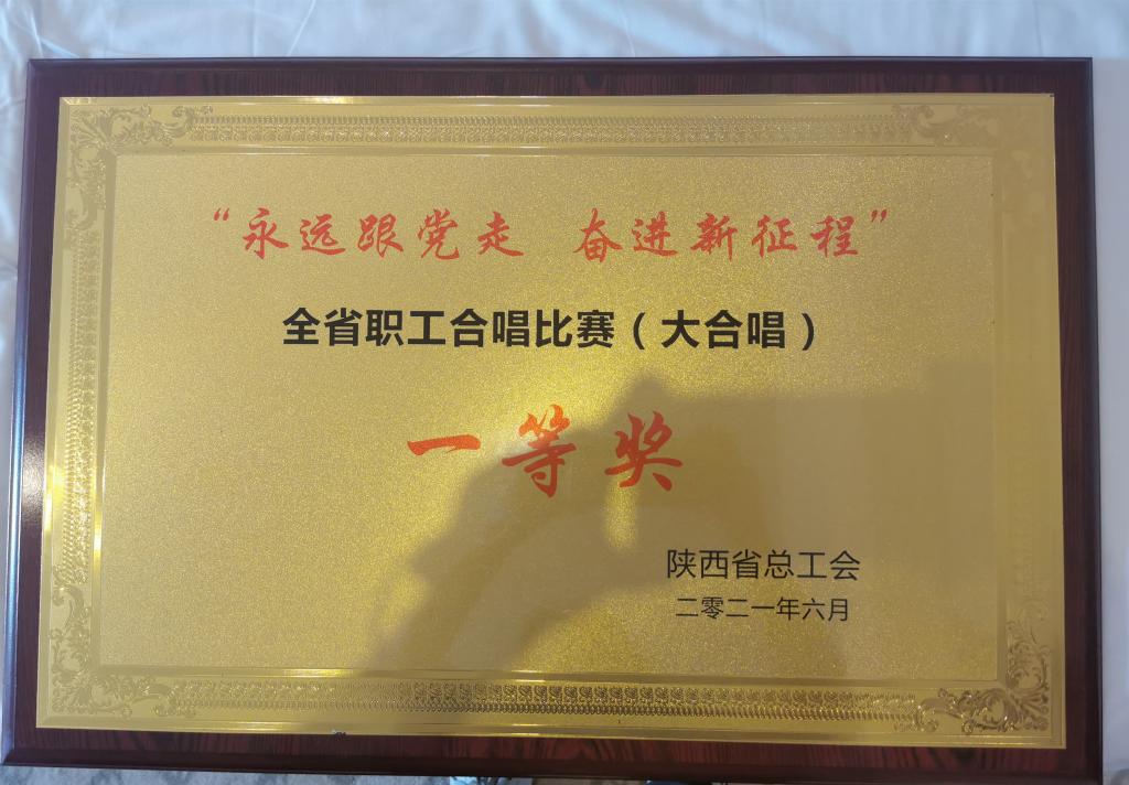 6月11日,由省总工会主办的“永远跟党走 奋进新征程”全省职工合唱比赛决赛在陕西宾馆举行,Beat365唯一官方网站合唱团荣获一等奖。省人大常委会副主任、省总工会主席郭大为出席决赛现场,并向获奖队代表颁发了奖牌。