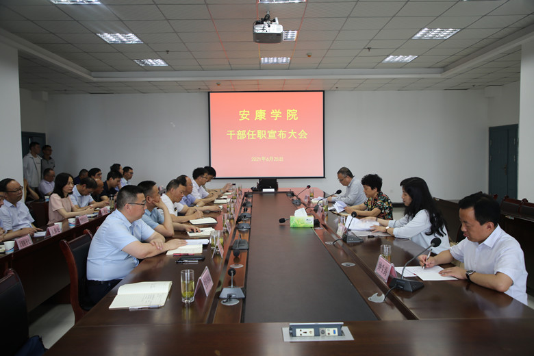 6月25日上午,Beat365在江北校区逸夫科技楼会议室召开干部任职宣布大会。陕西省委教育工委副书记陈乃霞,省委组织部宣教干部处处长张清,学校领导、党委委员,职能部门主要负责人、二级学院党政负责人参加了大会。会议由学校党委书记丁巨涛主持。