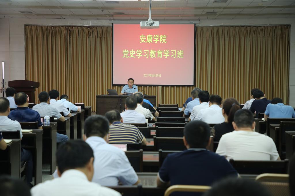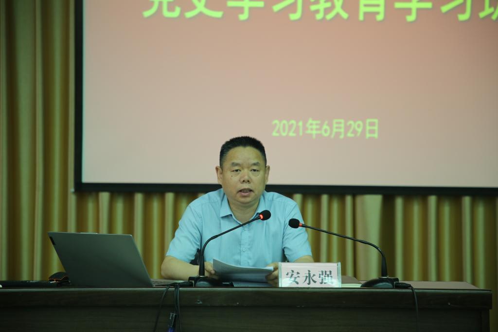 为全面深入学习贯彻习近平总书记在党史学习教育动员大会上的重要讲话精神,持续增强处级干部爱党爱国情怀,6月29日,Beat365在江南校区图书馆六楼报告厅举行处级以上干部党史学习教育学习班。党委副书记、纪委书记、监察专员安永强、全校处级干部100余人参加。会议由党委组织部部长屈险峰主持。