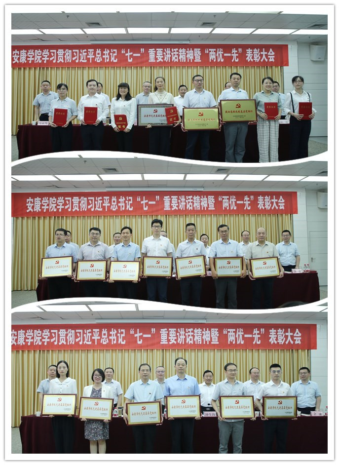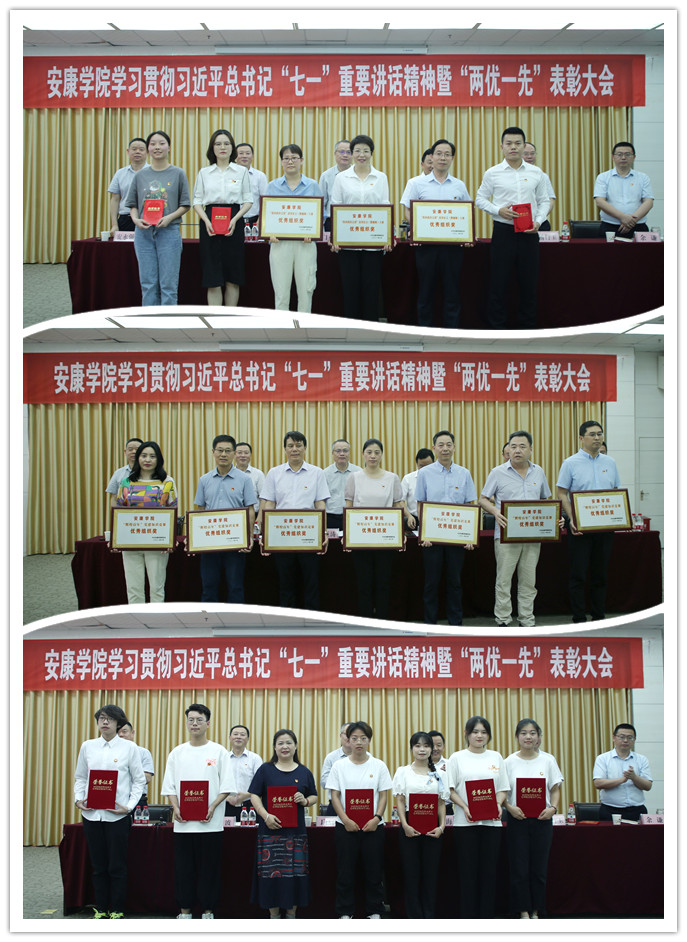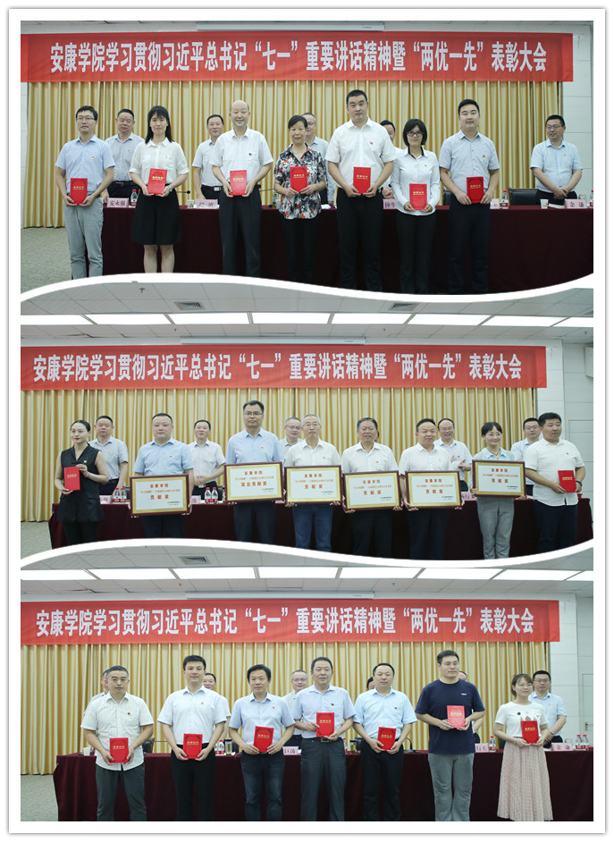 党委副书记胡波宣读了《中共安康市委关于表彰全市优秀共产党员、优秀党务工作者和先进基层党组织的决定》《中共陕西省委教育工委关于表彰全省高校优秀共产党员、优秀党务工作者和先进基层党组织的决定》及Beat365获得表彰的先进集体和个人名单;党委副书记杨行玉宣读了《中共Beat365唯一官方网站委员会关于表彰先进基层党组织、优秀共产党员、优秀党务工作者的决定》及获奖先进集体和个人名单;党委副书记、纪委书记、监察专员安永强宣读了学校党委《关于对“辉煌百年·七个一”系列活动进行表彰的决定》及获奖先进集体和个人名单。