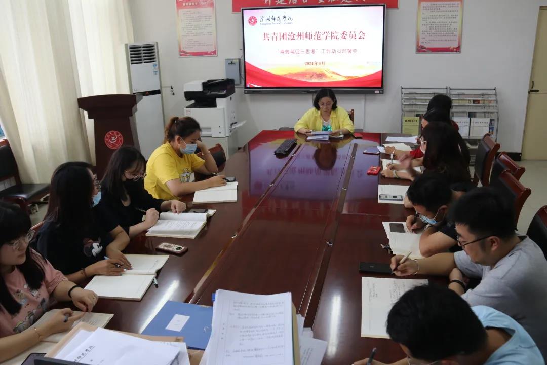 2021年8月30日下午,校团委召开了共青团太阳集团tcy8722网站委员会“两转两促三思考”工作动员部署会,会议由校团委书记李倩主持,各团总支书记参加。