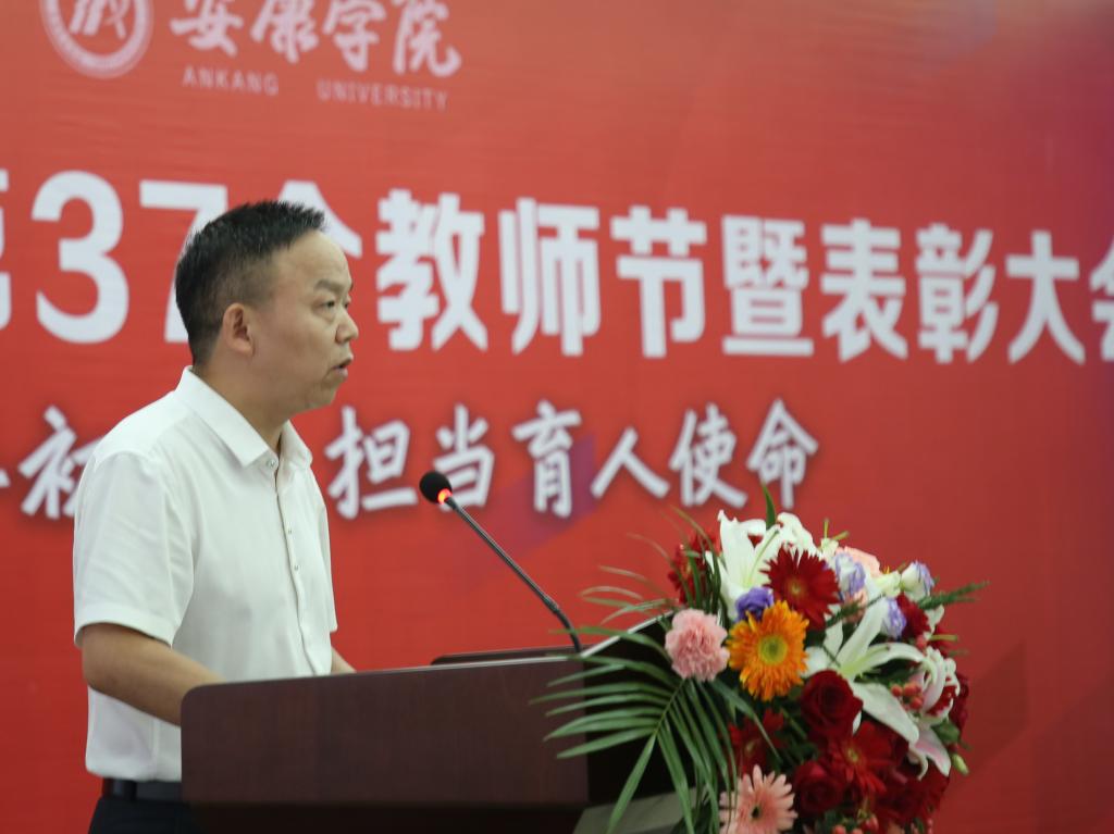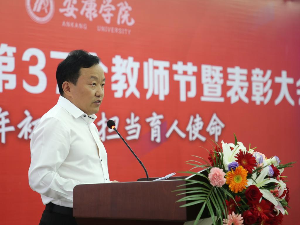 党委书记丁巨涛代表学校党委和行政,向学校全体教职员工致以节日的问候,向受到表彰的先进集体、先进个人表示热烈的祝贺,向今年新加入Beat365唯一官方网站的53名新教师表示诚挚的欢迎。他结合学习习近平总书记关于教育工作重要论述的思考,谈了四点体会。恪守师德规范,牢记和落实立德树人根本任务。每位教职员工要做到“明大德、守公德、严私德”。立足岗位,认真践行现代大学基本职能。每位教师都要把站好讲台作为一生的追求,把提升教学水平作为一生的必修课;潜心研究,选准科研方向,组建科研团队,提高科研能力;紧扣安康建设西北生态经济强市发展目标,主动对接乡村振兴战略、安康主导产业发展等需求,深入行业企业开展产学研调研与合作,进一步提升服务地方经济社会发展的能力和水平。坚持“办学以教师为本”理念,全心促进教师发展。学校的管理、服务人员要牢固树立依靠教师、服务教师的工作理念,用实实在在的行动为教师做好服务。深入推进“我为群众办实事”实践活动,把党史学习教育同解决师生实际问题结合起来,从最突出的问题抓起、从最现实的利益出发,下实功、办实事,高质量完成“我为群众办实事”各项任务,切实解决师生“急难愁盼”问题,不断增强师生获得感和幸福感。进一步丰富宣传形式,挖掘我们身边爱岗敬业、乐于奉献的典型,大力宣扬在教书育人一线工作中涌现出的先进,充分发挥先进的引领作用,引导更多的教师见贤思齐,提高教师队伍整体水平;完善教师专业成长的激励机制。狠抓落实,奋力推动既定发展目标顺利实现。落实党史学习教育第二阶段任务,牢牢抓住落实认真学习贯彻习近平总书记在庆祝中国共产党成立100周年大会上重要讲话精神的政治任务不放松;牢牢抓住深入开展“我为群众办实事”实践活动各项目标举措不放松;牢牢抓住落实目标任务清单和“十四五”目标任务,以高质量党建推动学校高质量发展不放松。要以建功必须有我的历史担当、功成不必在我的胸怀境界,咬定目标不放松、撸起袖子加油干,进一步凝聚强大合力,在“落实”上狠下功夫,低调、务实、勤奋、扎实有效推进各项工作。坚持目标导向和问题导向,奋力做好教学科研、社会服务和内部管理服务等工作;对标规划目标和任务,主动作为,克难攻坚,一件件抓好落实,推动“十四五”规划蓝图变为现实。