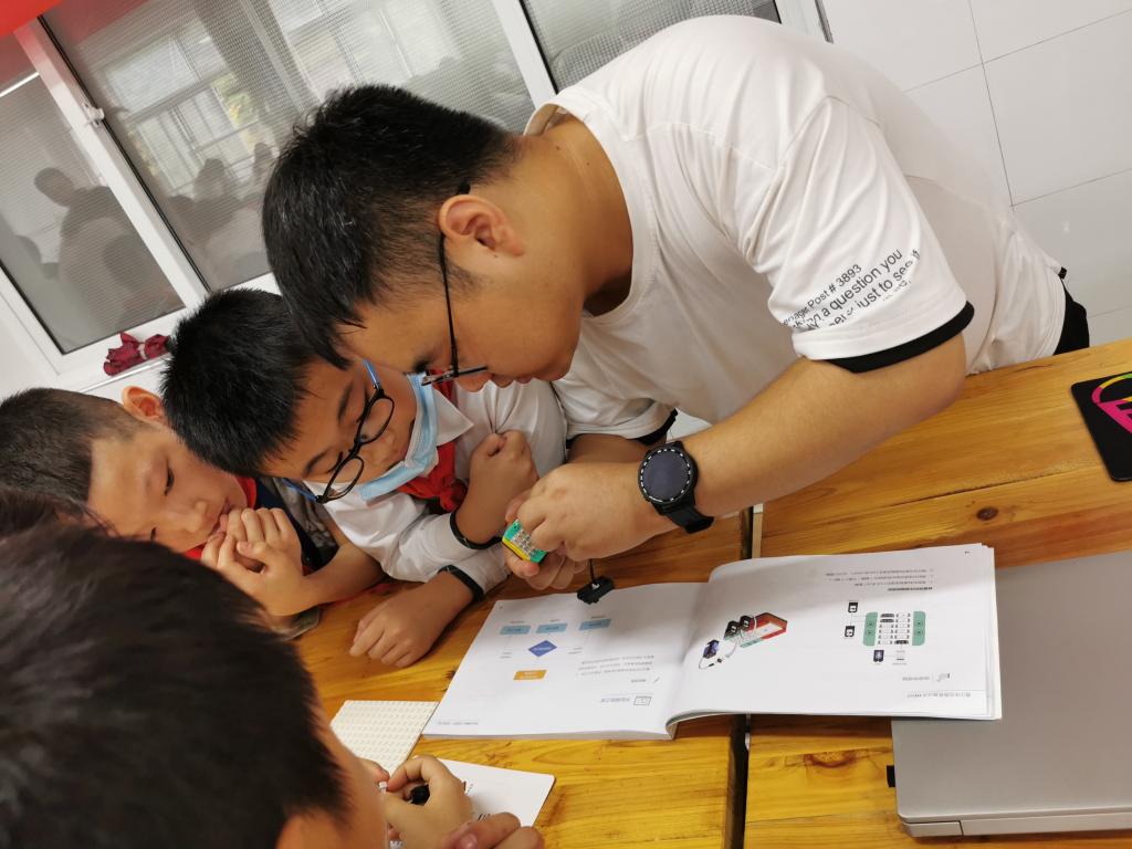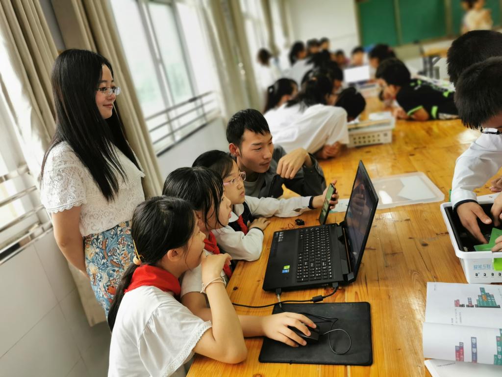 随后,教育学院师生带领小学生分组围绕STEAM智能套件,结合Mixly图形化编程软件,完成从编程到创意搭建,软件与硬件的结合,让小学生体会到科技的强大,感受编程的魅力,激发其无限创意。