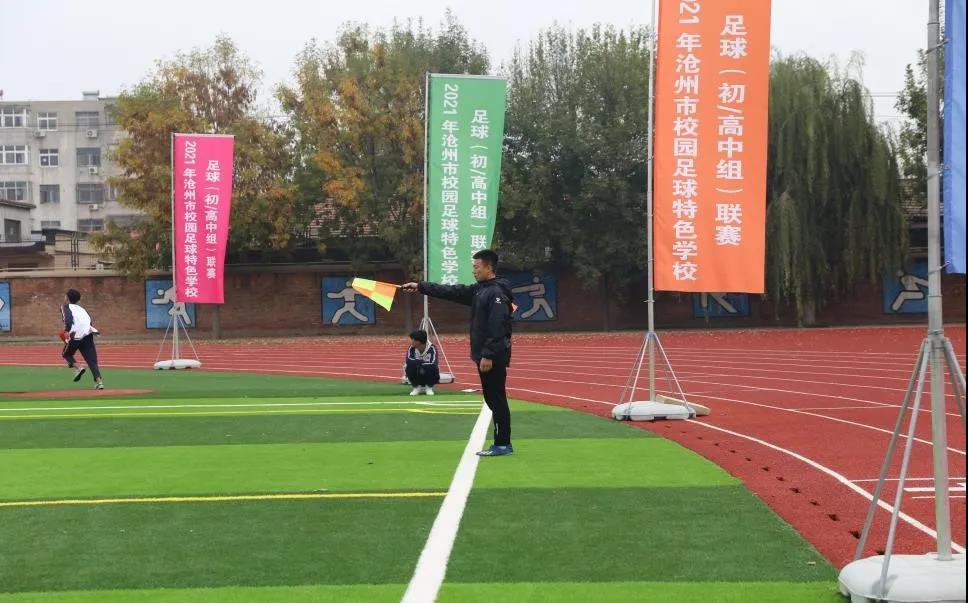 2021年沧州市校园足球特色学校足球联赛于10月12日在沧州市第一职业中学举行。来自太阳集团tcy8722网站体育学院2018级足球专业和2019级足球专业的20名同学在体育学院姚新利、孙静两位老师的带领下,圆满完成了联赛裁判工作。