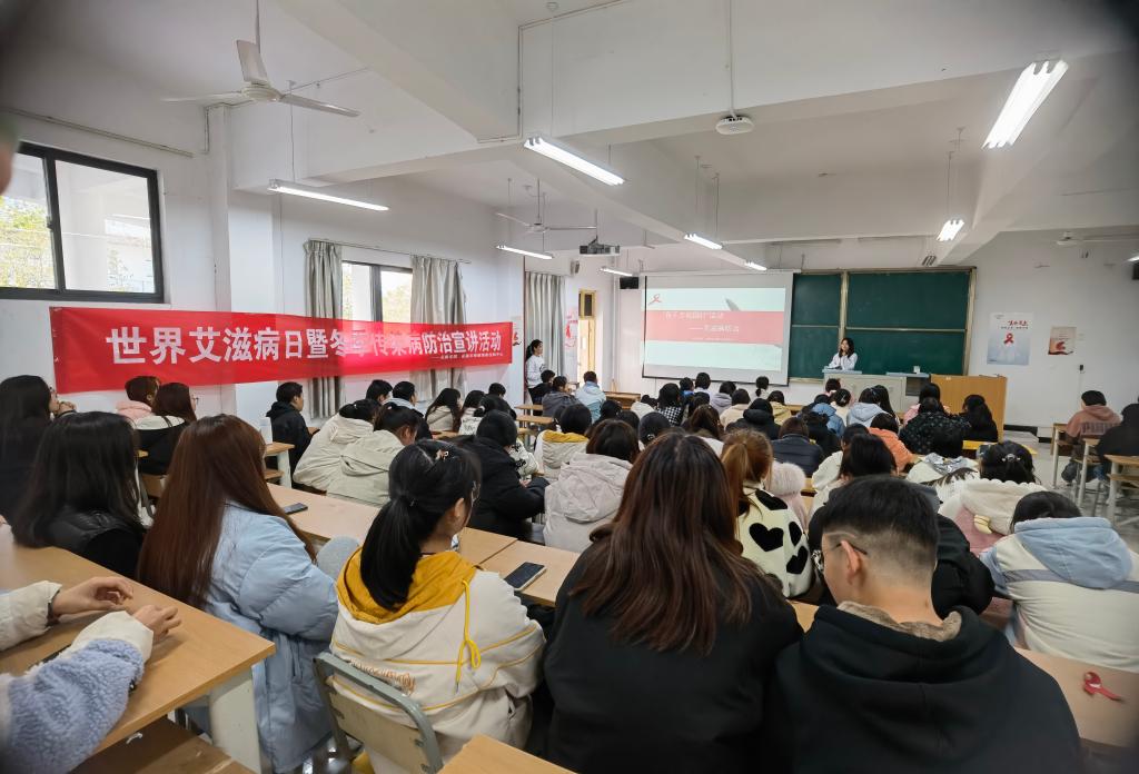 学校通过在LED屏播放宣传标语、校园摆放海报展架、发放艾滋病、冬季传染病防治知识手册、安全套、艾滋病检测试剂盒等形式,广泛宣传相关知识;校医疗保健服务中心工作人员分别在江南校区林荫大道、江南6号教学楼、江北食堂前小广场、江北学生活动中心等4处设立宣传点,现场解答师生疑问,帮助大家正确认识艾滋病、了解冬季易发传染病的预防措施;积极主动联合当地疾控部门及医院专家,举办专题宣讲会、组织开展主题班会等系列活动。