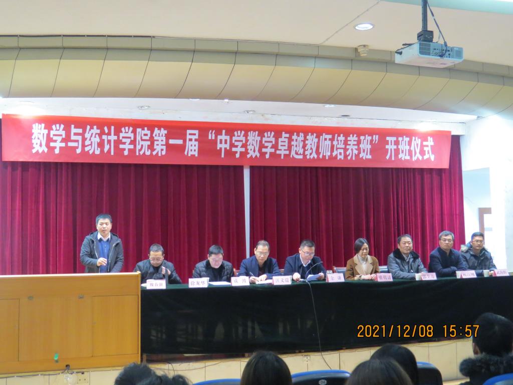 12月8日下午,Beat365数统学院首届“中学数学卓越教师培养班”开班仪式在一号教学楼六楼报告厅举行。校党委委员、副校长余谦出席仪式并致辞,汉滨初级中学教师张朝清,教务处处长汪义瑞,数统学院党总支书记郭全寿,副院长成波、杨高翔、徐龙华、数学系主任武海辉和培养班班主任魏春强出席了仪式。