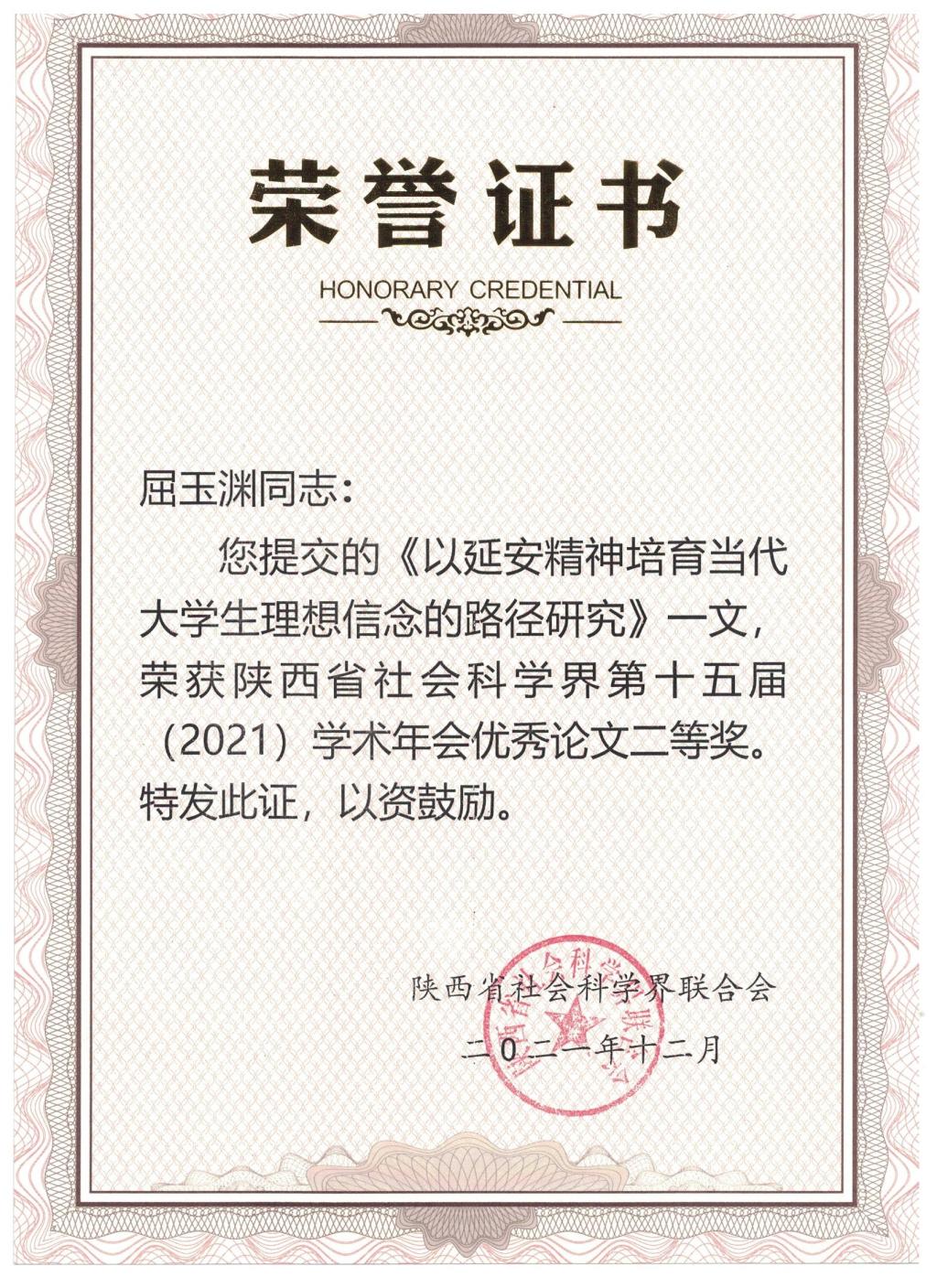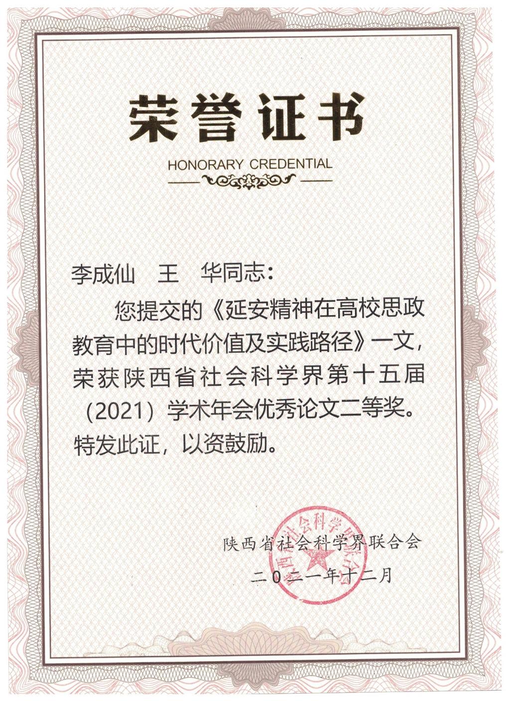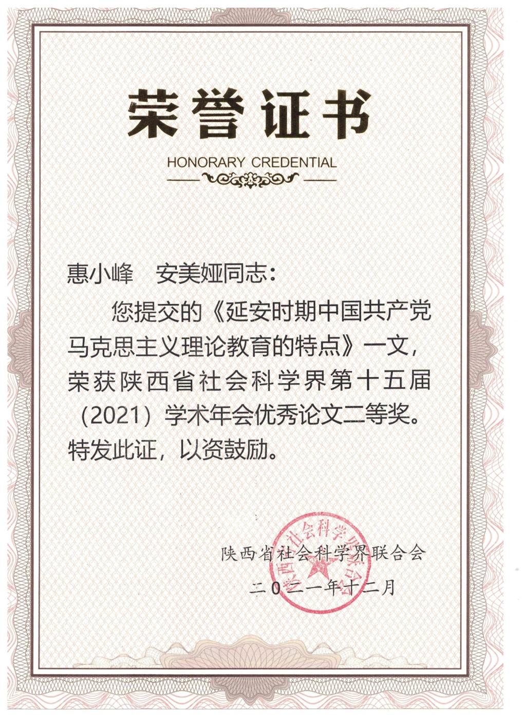 Beat365经管学院承办的“延安精神融入地方高校思政育人专题研讨会”征文多篇文章荣获陕西省社科界第十五届(2021)学术年会优秀论文奖。其中,丁巨涛、李友海、鲁延安同志的论文《从党史中汲取思想伟力办好人民满意的大学》,何家理同志的论文《地方党史编纂与资政育人衔接的探索与实践》分别荣获优秀论文一等奖;惠小峰、安美娅同志的论文《延安时期中国共产党马克思主义理论教育的特点》,赵临龙同志的论文《用“延安精神”的时代要求创新安康旅游产业的发展》,李成仙同志的论文《延安精神在高校思政教育中的时代价值及实践路径》,屈玉渊同志的论文《以延安精神培育当代大学生理想信念的路径研究》分别荣获优秀论文二等奖。