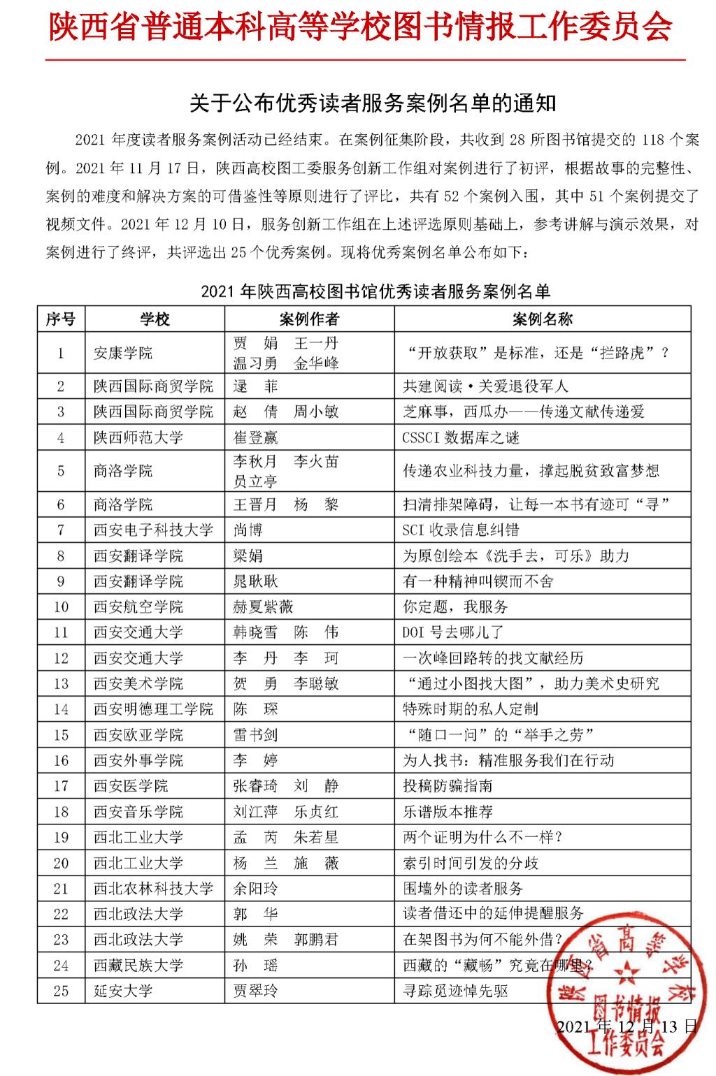 陕西省高校图书馆服务典型案例展示交流会是陕西省高校图工委为加强馆际业务交流、激发馆员服务意识、丰富业务手段,进而提高各高校图书馆服务水平的重要活动。本次案例大赛共收到28所图书馆提交的118个案例,其中52个案例入围,25个案例被评为优秀案例。