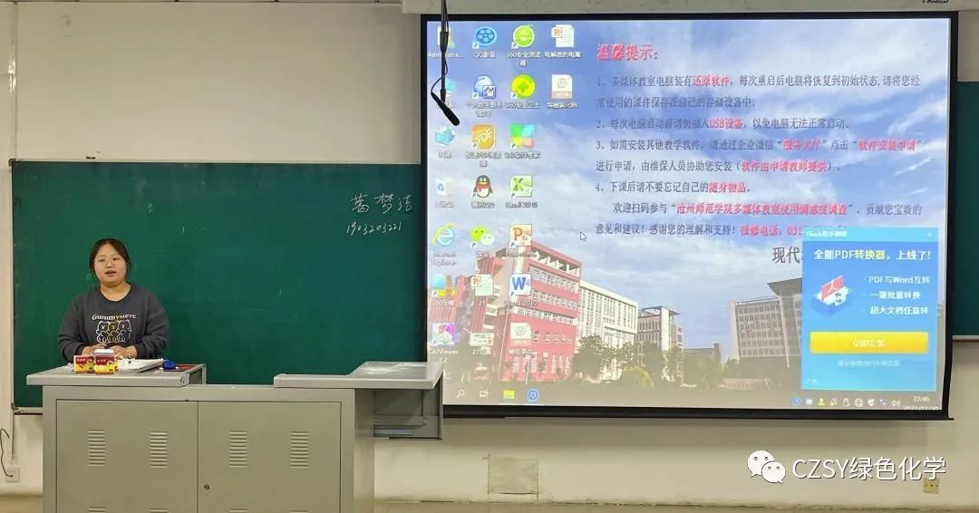 该比赛是对以化学教学论理论课程为依托,微格训练为实践的“试讲试教”活动的成功检验。从动员、选题、研讨、训练、反复磨课历时一个月。在多次教学实践中,学生通过观看其他人的讲解、反观自己的教学,不断反思,继而对教学设计不断修改,逐渐从开始的一头雾水,到逐渐厘清思路,将先进的教学理念深化于中,逐渐成长起来。同学们对每一个环节都认真对待,体现了未来教师应有的严谨作风。整个过程全员参与,包括比赛打分环节,体现了比赛科学规范、公正公平。经过这次比赛,学生教学能力得到提升,精神面貌也大为改观,也激励我进一步改进教学方式、方法,加强团队建设,使化学专业师范生以更优异的成绩走向社会。