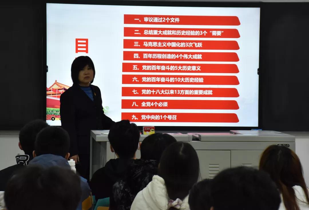 刘武运指出,这次全会是在我们党百年华诞的重要时刻,在“两个一百年”奋斗目标历史交汇关键节点上召开的一次重要会议。她重点宣讲了党的十九届六中全会精神,领学了习近平总书记就《中共中央关于党的百年奋斗重大成就和历史经验的决议》,并要求同学们从党的十九届六中全会精神中汲取智慧和力量,自觉地践行初心使命,在新时代更好坚持和发展中国特色社会主义。
