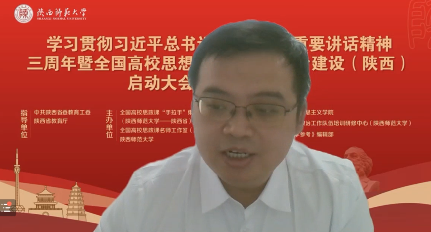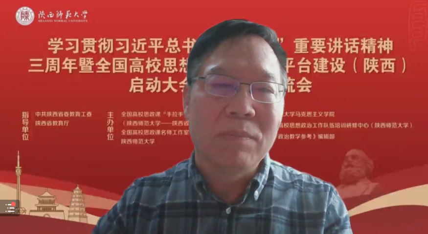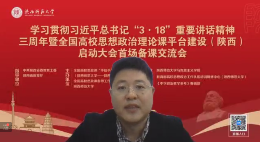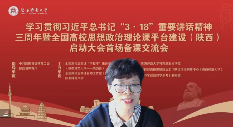 本次教学沙龙活动依托全国高校思政课“手拉手”集体备课中心(陕西师范大学——陕西省)首场线上备课交流会进行。全体思政教师在线聆听了复旦大学马克思主义学院教授、国家教学名师,教育部高等学校教学指导委员会(马克思主义理论类)委员,教育部高等学校思想政治理论课总教指委副主任委员高国希教授;西安交通大学马克思主义学院院长燕连福教授;西北大学马克思主义学院常务副院长王强教授;陕西师范大学马克思主义学院副院长张帆教授;陕西省教育科学研究院基础教育研究中心副主任夏波老师的主旨报告和思政课改革创新经验分享。在线观摩了第二届全国高校思政课教学展示特等奖获得者西安工程大学郭松副教授和西安高新一中正高级教师李育民的教学展示。随后,Beat365思政课教师在线交流了学习观摩心得。