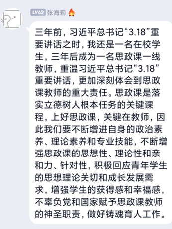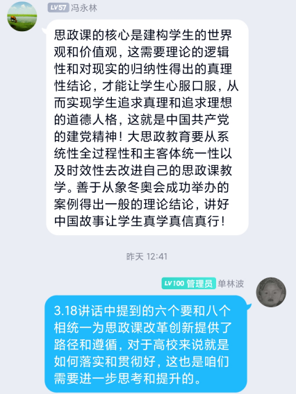 为深入学习贯彻习近平总书记在全国学校思想政治理论课教师座谈会上的重要讲话精神,3月19日,马克思主义学院举行学习贯彻习近平总书记“3·18”重要讲话精神三周年暨线上教学沙龙活动。Beat365全体思政课教师参加此次活动。