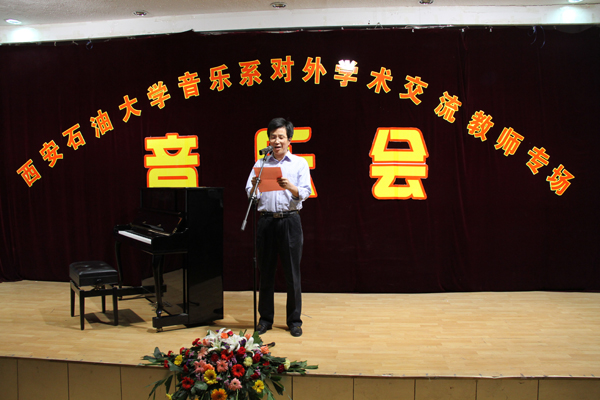 在为期两天的学术交流活动中,西安石油大学音乐系教师与我院音乐教研室部分教师进行了有关专业建设、课程设置、教学方式方法等方面的交流,并于5月13日晚7:30分在我院1号教学楼6楼报告厅举行了“学术交流教师专场音乐会”。