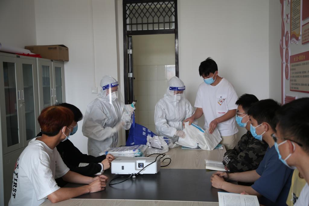 随后,与会人员转至4号学生公寓楼前参加学校疫情防控应急处置演练。演练模拟场景设置为学生公寓出现异常情况的紧急应对处置。参与演练的学校领导、专门工作组和二级学院负责人、辅导员、医务人员等根据Beat365新修订的疫情防控应急处置预案,对照应急演练方案,各司其职,分工协作,密切配合,规范有序完成应急状态下的各项处置工作。