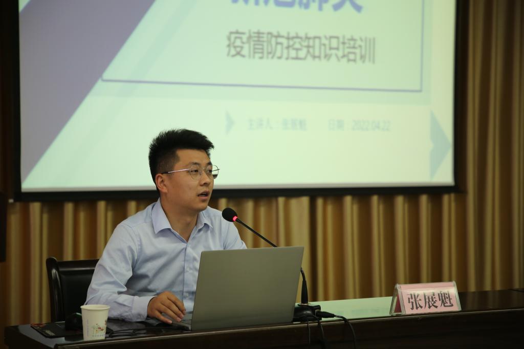 疫情防控知识专场培训在图书馆6楼报告厅举行,张展魁从传染病基本理论、新冠肺炎疫情特征与近期疫情形势、高校新冠肺炎防控方案(第五版)解读、目前来返汉滨人员管控措施等四个方面进行了防控政策宣讲,并结合Beat365实际,重点从人员管理、日常防控措施、联防联控机制运行、风险分析研判、应急处置等方面进行辅导,和与会人员进行交流。