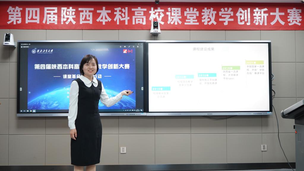 自2021年10月,以“课堂革命,陕西行动”为主题的第四届陕西本科高校课堂教学创新大赛正式启动以来,Beat365成立工作小组,制定实施方案,并于2021年11月启动第三届课堂教学创新大赛。校赛重在聚焦课程教学“痛点”,梳理教学创新思路,总结课程建设成果,为遴选参赛选手及团队,提升课程教学内涵奠定了良好基础。邸玲、李婷教师团队从校赛到省级复赛、决赛,从课程教学设计到课堂教学展示,从课程教学创新汇报到现场答辩,准备充分,表现自如,课程创新实践目标明确、方法得当、效果良好,赢得了评委的肯定。