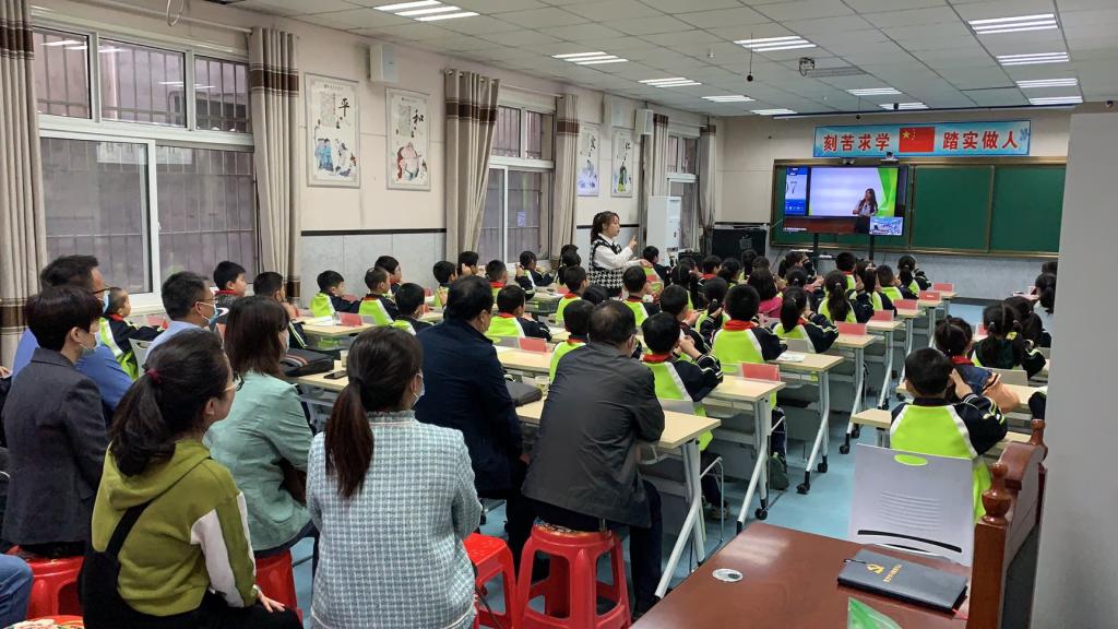 在茅坪镇中心小学,与会人员首先现场观摩了一堂精彩的远程音乐课。在之后的挂牌仪式上,师范生技能训练中心主任崔炜荣介绍了远程美育支教开展一年以来的进展和成效,艺术学院院长成党伟介绍了艺术学院的师资和人才培养情况,张富华代表Beat365向茅坪镇中心小学授牌。