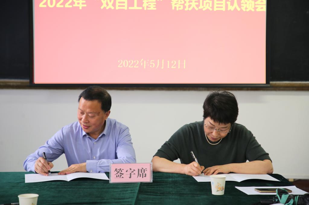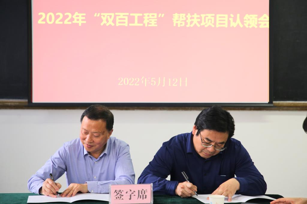 胡波代表学校巩固拓展脱贫攻坚成果同乡村振兴有效衔接工作领导小组与承担帮扶任务的项目负责人代表化学化工学院院长柳林、现代农业与生物科技学院院长王健分别签订了项目认领书。责任单位代表艺术学院院长成党伟、信息化建设与管理处副处长崔炜荣就做好帮扶工作做了表态发言。