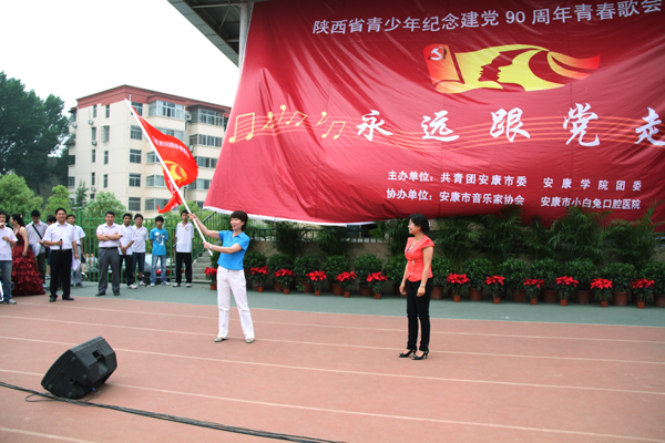 为庆祝建党90周年,宣扬传唱90年来党团结带领全国各族人民推进中国革命、建设和改革的光辉业绩,激发广大青少年的政治热情和创先争优意识,坚定跟党走中国特色社会主义道路的理想信念。团省委在全省范围内开展“永远跟党走”——陕西省青少年庆祝建党90周年青春歌会,安康青春歌会为全省的第三站。本次青春歌会安康演出活动由我院团委与共青团安康市委联合主办,也是我院庆祝建党90周年系列活动之一。