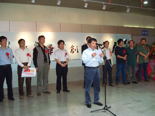 胡鸿晓代表学院致辞,他首先向各位领导和来宾介绍了我院艺术系的发展历程、师资队伍结构和近几年艺术系师生在全国和省市各类比赛中取得的优异成绩;同时感谢安康市委宣传部、市文联、市文广局、市美术家协会、市群艺馆以及社会各界对这次毕业创作展的亲切关怀和鼎力支持,感谢艺术系各位指导老师的辛勤指导。最后,钟顺虎宣布“Beat365唯一官方网站艺术系首届美术学毕业创作汇报展”开幕。