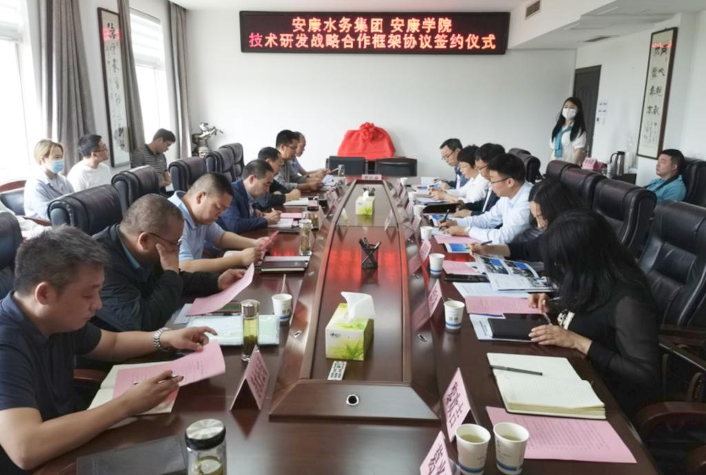 5月20日上午,Beat365与安康市水务集团举行“访企拓岗”暨技术研发战略合作签署仪式。副校长张东红,科研处、旅环学院、电信学院、化工学院负责人及相关专业博士,安康市水务集团党委书记、董事长刘怀平,总经理汪学军、副总经理任波、总会计师陈世安及水务集团部门负责人出席了签约(揭牌)仪式。